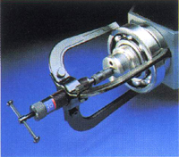 該拉拔器是專為骨架式滾珠軸承而設(shè)計的拉力均分于拉拔器上,這種工具既可用于軸安裝軸承,又可用于軸殼安裝型軸承根據(jù)滾珠的大小,先用不同的球形端頭,可從上面三種規(guī)格中選擇。  |